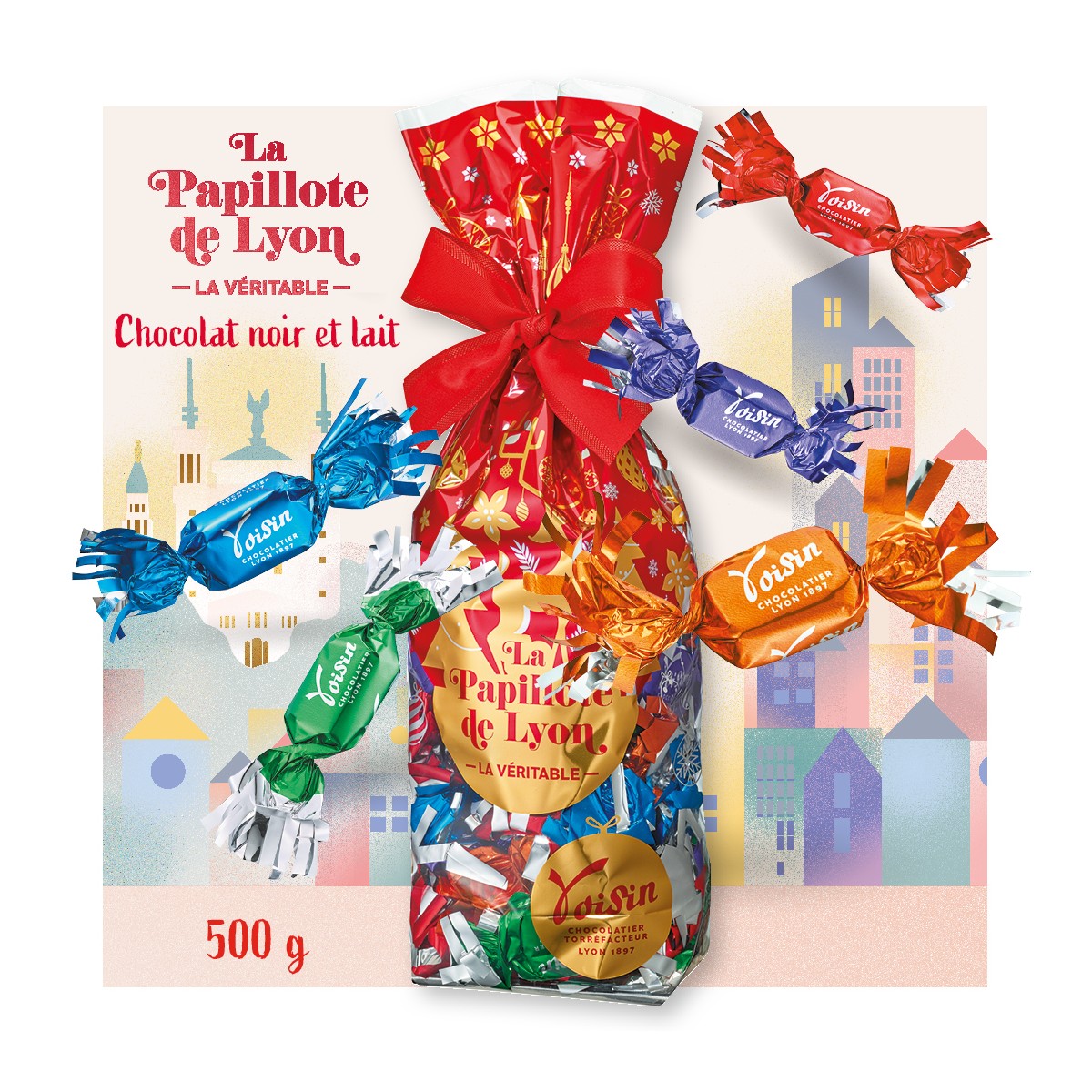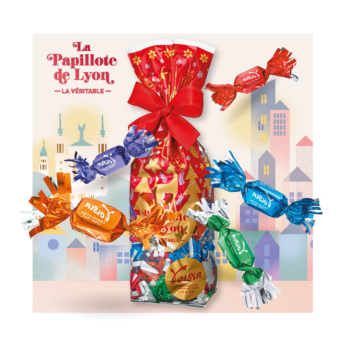 Commandez en circuit court chez le chocolatier lyonnais Voisin, l'authentique papillote de Lyon, originelle du Quartier mythique de Saint Jean dans le Vieux Lyon.