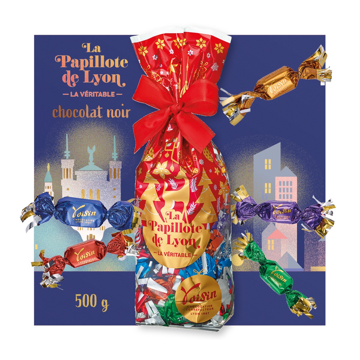Décorez et sublimez vos tables de Noël de ses couleurs chatoyantes ; offrez aux plus gourmands les meilleures papillotes des pralinés et ganaches du maître chocolatier Voisin, maison d'exception lyonnaise.