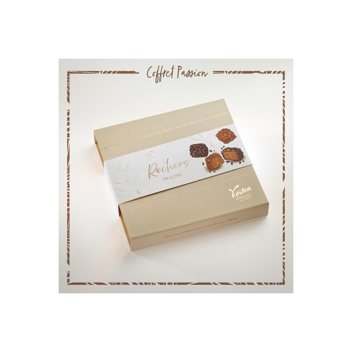 Icone de la gourmandise, notre rocher praliné Malakoff est une déclaration de passion pour les palais les plus gastronomes. Sous sa robe brillante de chocolat noir ou lait des plus belles origines de cacaos se cache un trésor de praliné à l’ancienne aux noisettes du Piémont parmi les meilleurs du monde lentement caramélisées au chaudron de cuivre puis broyés pour révéler leur puissance aromatique. Sans artifice, authentique, généreux : on ne transige pas avec le gout.