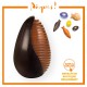 Ce grand chocolat noir de dégustation 70% (décor lait), fruit des meilleures fèves d'Amérique latine sélectionnées pour leur intensité gustative, délivre des notes cacaotées exceptionnellement aromatiques et longues en boucheGarni de petits œufs fourrés pralinés, de feuilletés nougatine et de friture de Pâques.